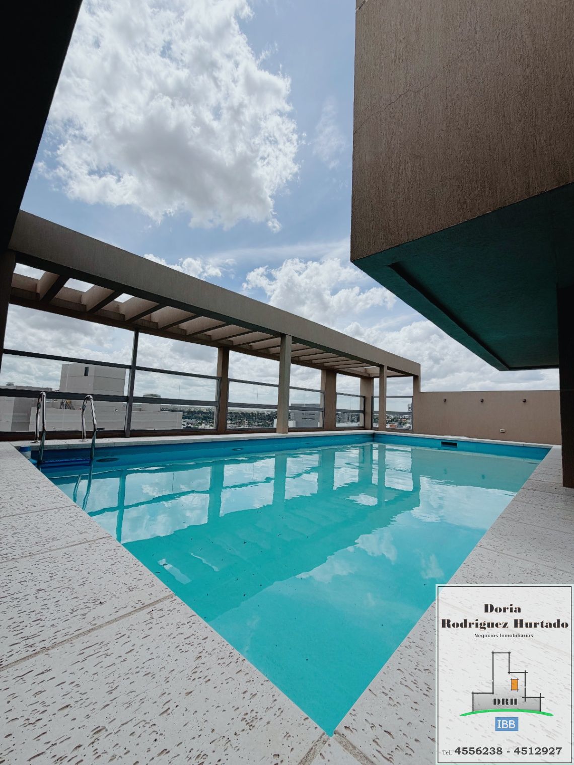 El edificio cuenta con pileta de 10×3 en terraza , un quincho de mas de 100 metros en entrepiso y baulera propia
